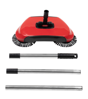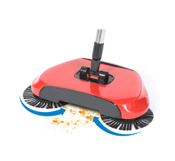 Vassoura Giratória, 3 em 1. Ela é uma vassoura, apanhador e depósito de lixo. Com esta vassoura, consegue varrer facilmente todos os cantos da casa, sem usar o apanhador. Com tecnologia de tripla escova rotativa (360º) para eliminar o desperdício de lixo, levando para o recipiente embutido.